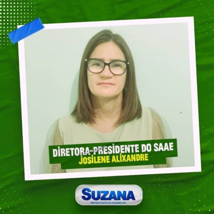 A prefeita eleita de Juazeiro, Suzana Ramos (PSDB), continua divulgando sua futura equipe de governo através das redes sociais e acaba de soltar mais um nome. A partir do dia 1º de janeiro de 2021, o Serviço de Água e Saneamento Ambiental (SAAE) terá como diretora-presidente Josilene Alixandre. Formada em Geografia pela Universidade de Pernambuco […]