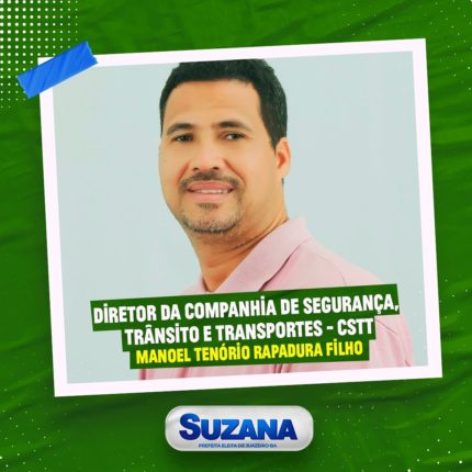 A prefeita eleita em Juazeiro, Suzana Ramos (PSDB), divulgou mais um integrante do primeiro escalão do seu futuro governo. Manoel Tenório Rapadura Filho assumirá a Companhia de Segurança, Trânsito e Transportes (CSTT). O novo titular da CSTT é formado em Administração pela Faculdade São Francisco de Barreiras (FASB) e está prestes a concluir o curso […]