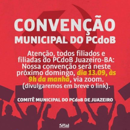 Neste domingo (13), às 09h da manhã, o PCdoB Juazeiro realiza a Convenção Eleitoral que vai formalizar a candidatura de vereadores e vereadoras para as eleições desse ano. Será um momento de muita importância para o ” nosso partido e que gostaríamos de contar com a presença de todos os camaradas que estão conosco nessa […]