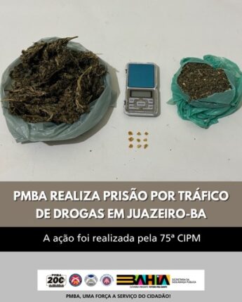 Nesta quinta-feira (05), policiais da 75ª Companhia Independente de Polícia Militar (CIPM), durante rondas ostensivas no bairro Tancredo Neves, em Juazeiro (BA), realizaram a prisão de um homem suspeito de tráfico de drogas. Durante a abordagem, foram apreendidos com o suspeito 01 (uma) balança de precisão, 02 (duas) porções grandes de cannabis (maconha) e 09 […]