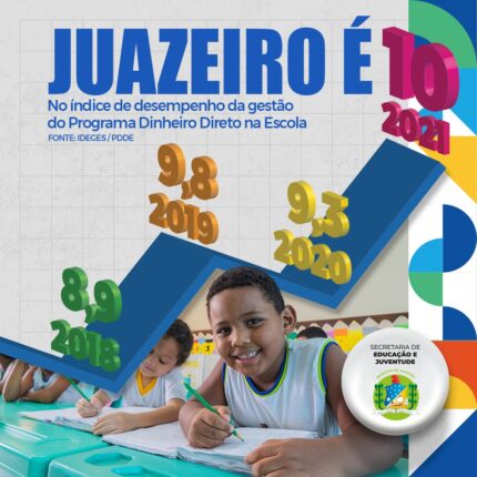 Juazeiro é mais uma vez destaque na Educação. Desta vez, a Prefeitura Municipal, através da Secretaria de Educação e Juventude (Seduc), se destacou pela excelente administração financeira realizada no ensino municipal, alcançando média dez, no índice de desempenho da gestão do programa Dinheiro Direto na Escola (PDDE), sendo contemplada com a Parcela Desempenho, recurso de […]