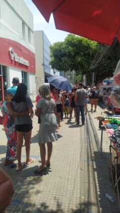 Debaixo de sol, clientes da Caixa reclamam de demora para atendimento no banco