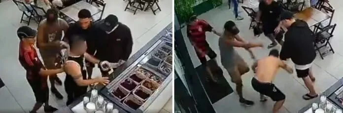Torcedores do Flamengo invadem sorveteria agridem homem que estava com a camisa da Gaviões da Fiel