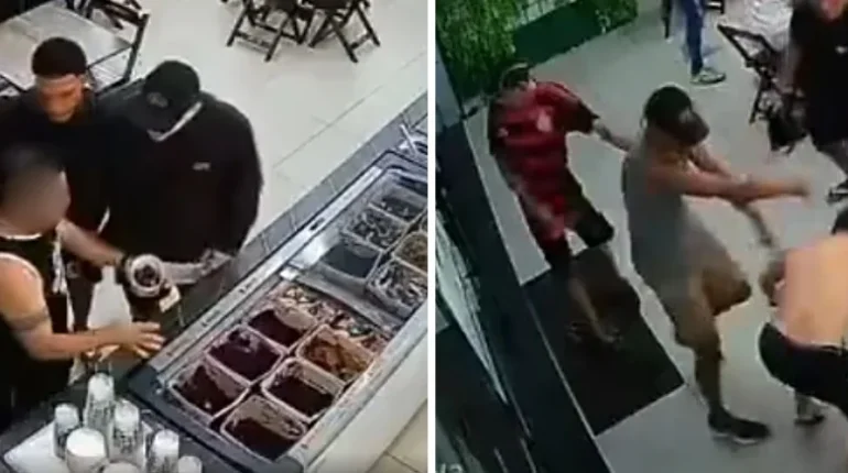 Torcedores do Flamengo invadem sorveteria agridem homem que estava com a camisa da Gaviões da Fiel