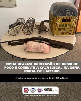 PMBA, através da 74ª CIPM, realiza apreensão de arma de fogo e combate à caça ilegal na zona Rural de Juazeiro