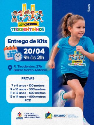 A Prefeitura de Jazeiro, por meio da Secretaria de Cultura, Turismo e Esportes (Seculte), informa que a entrega dos kits da 22ª edição da Corrida Tiradentinhos será realizada nesta segunda-feira (20). Os participantes devem se dirigir à Rua Tiradentes, nº 276, bairro Santo Antônio, no horário das 9h às 21h, para a retirada do material. […]