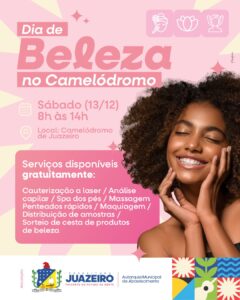 A Prefeitura de Juazeiro, por meio da AMA, promove neste sábado (13), das 8h às 14h, um dia especial de beleza e cuidado no Camelódromo Dois de Julho. A iniciativa, destinada a permissionários, trabalhadores e frequentadores, oferece atendimentos gratuitos que ampliam o acolhimento e valorizam a comunidade que movimenta diariamente o comércio local. A ação […]