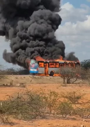 Ônibus pega fogo na estrada do Salitre, BA-210 em Juazeiro (BA)
