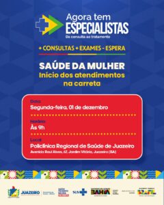 A Prefeitura de Juazeiro, por meio da Secretaria Municipal de Saúde (Sesau), em parceria com a Secretaria de Saúde do Estado da Bahia (Sesab), Ministério da Saúde e o Governo Federal, realizará a cerimônia de chegada da Unidade Móvel Saúde da Mulher, que integra o programa “Agora Tem Especialistas”, na próxima segunda-feira, 1º de dezembro, […]