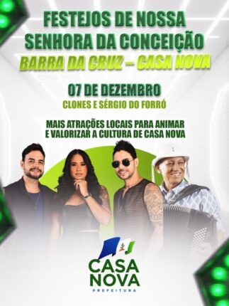 As comunidades de Bem Bom e Barra da Cruz, no interior de Casa Nova, estão prestes a viver dias de celebração em homenagem a Nossa Senhora da Conceição. A Prefeitura Municipal preparou uma programação especial que promete movimentar a região com música, devoção e alegria. Em 7 de dezembro, Barra da Cruz entra no clima […]