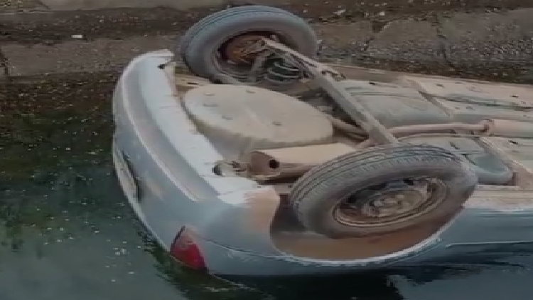 Carro capota e cai em canal de irrigação no distrito de Maniçoba, em Juazeiro