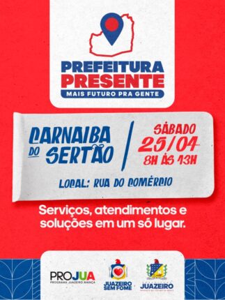 A Prefeitura de Juazeiro, por meio da Secretaria de Governo, realiza no sábado (25) a quarta edição do programa Prefeitura Presente, no distrito de Carnaíba do Sertão. A ação acontece das 8h às 13h e vai ofertar atendimentos gratuitos nas áreas de saúde, assistência social, educação, cidadania e serviços públicos. O mutirão será […] A […]