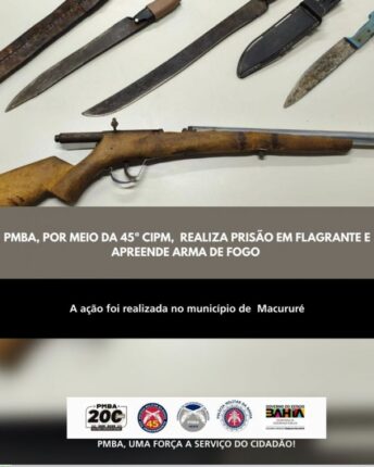 A Polícia Militar da Bahia (PMBA), por meio da 45ª Companhia Independente de Polícia Militar (CIPM)/Curaçá, realizou, nesta sexta-feira (20), a prisão em flagrante de um homem e a apreensão de uma arma de fogo no município de Macururé. A ação ocorreu durante a intensificação do policiamento. A guarnição foi acionada pelo plantão com a […]