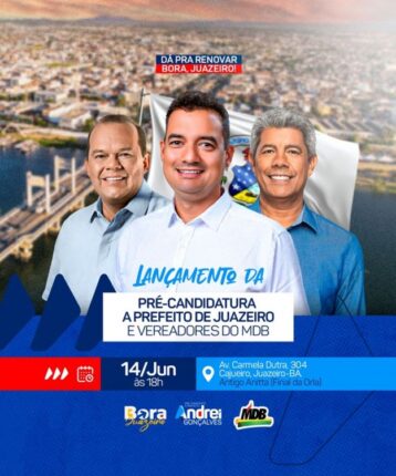 Será realizado no próximo dia 14 de junho, o lançamento da pré-candidatura de Andrei Gonçalves (MDB), a prefeito de Juazeiro-BA. O evento vai acontecer a partir das 18h, no antigo restaurante Anita, localizado na Av. Carmelo Dutra, no bairro Cajueiro. O evento contará com a presença de lideranças políticas e será marcado pelo sentimento de […]