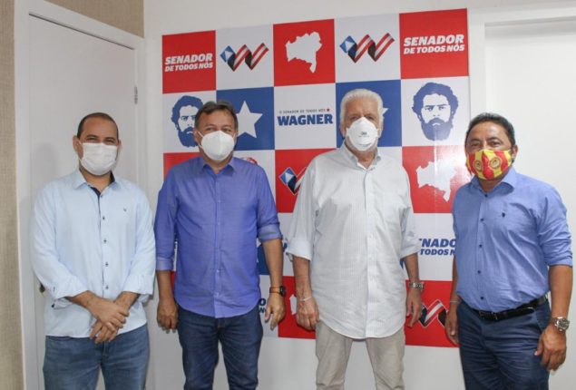 Deputado Roberto Carlos, senador Jaques Wagner e prefeito Marcos Lobo, de Uauá, tratam sobre ações que resultarão no progresso do município