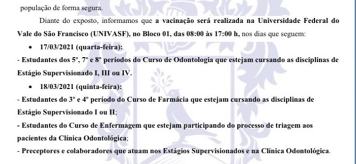 Faculdade particular em Petrolina pede pra vacinar alunos contra COVID-19. Leitor questiona o motivo do “fura-fila” e prefeitura se manifesta