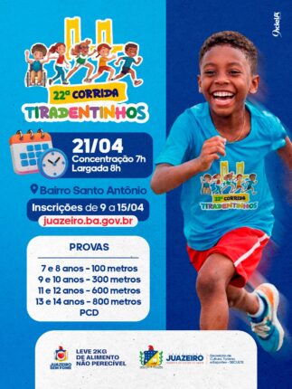 A Prefeitura de Juazeiro, por meio da Secretaria de Cultura, Turismo e Esportes (Seculte), promoverá a 22ª edição da Corrida Tiradentinhos, evento tradicional que incentiva a prática esportiva entre crianças e adolescentes do município. A entrega dos kits acontecerá no dia 20 de abril, das 9h às 21h, na Rua Tiradentes, nº 276, bairro Santo […]