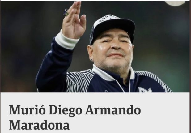 A imprensa argentina acaba de confirmar a morte do astro do futebol mundial, Diego Maradona. As informações dão conta que o craque, de 60 anos, sofreu uma parada cardiorrespiratória em sua residência, em tigre, e não resistiu. Mais informações em instantes. O Jornal Clarin postou a matéria com o título: “Murió Diego Armando Maradona” , ‘Morreu Armando […]