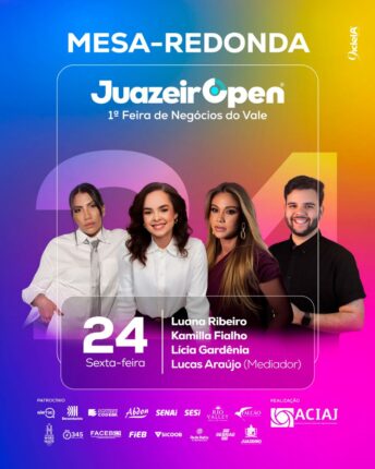 Já é amanhã e a vasta programação da JuazeirOpen – 1ª Feira de Negócios do Vale do São Francisco traz mesas-redondas voltadas ao compartilhamento de experiências, tendências e estratégias no mundo dos negócios. Na sexta-feira (24), o debate reúne Luana Ribeiro, Kamilla Fialho e Lícia Gardênia, com mediação de Lucas Araújo, trazendo reflexões sobre empreendedorismo, […]