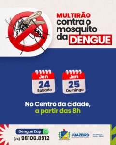 A Secretaria Municipal de Saúde de Juazeiro (Sesau), por meio da Vigilância em Saúde, realizará neste fim de semana, sábado (24) e domingo (25), um Mutirão de Combate às Arboviroses no Centro da cidade. As ações integram a rotina permanente de enfrentamento ao mosquito Aedes aegypti e estão sendo intensificadas no período que antecede o […]