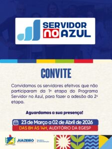 A Prefeitura de Juazeiro iniciou a segunda etapa de adesão ao Programa Servidor no Azul, ampliando a oportunidade para que mais servidores municipais possam participar da iniciativa voltada ao equilíbrio financeiro e à saúde econômica. O calendário foi divulgado pela Secretaria de Administração e contempla aqueles que ainda não aderiram ao programa. O período de […]