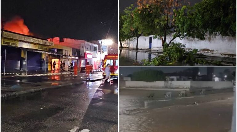 Temporal com raios em Petrolina derruba árvores, causa alagamentos e até incêndio