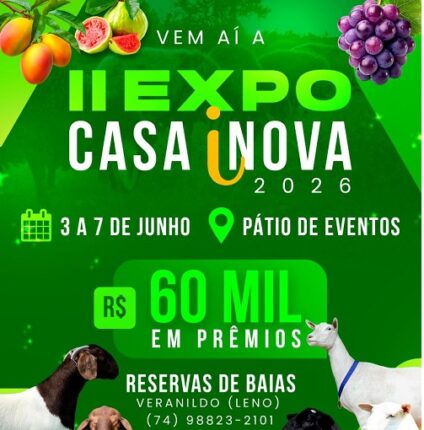 Casa Nova se prepara para viver mais uma grande vitrine do seu potencial agropecuário com a realização da II Expo Casa Inova, em 2026, marcada para acontecer entre os dias 3 e 7 de junho, no Pátio de Eventos. Consolidando-se como um dos principais eventos do setor na região, a feira chega à sua segunda […]