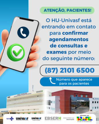 HU-Univasf reforça contatos oficiais para confirmação de agendamentos de consultas e cirurgias