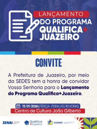 A Prefeitura de Juazeiro, por meio da Secretaria de Desenvolvimento Social, Diversidade, Igualdade Racial e Combate à Fome (Sedes), realiza nesta terça-feira (13) o lançamento do Programa Qualifica+ Juazeiro, em pareceria com o Serviço Nacional de Aprendizagem Industrial (Senai). O evento acontecerá às 18h, no Centro de Cultura João Gilberto, e marca a apresentação oficial […]