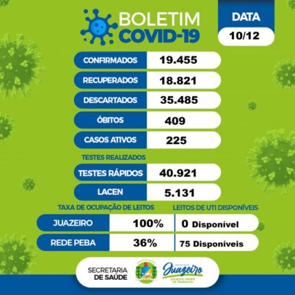 Juazeiro registrou um óbito por complicações da Covid-19 nesta terça-feira (14). A informação está no boletim epidemiológico da Secretaria Municipal de Saúde (Sesau). O óbito foi de uma pessoa do sexo masculino, de 35 anos, e ocorreu em um hospital particular de Juazeiro. O paciente possuía histórico de comorbidade. Com isso, o município contabiliza 410 […]