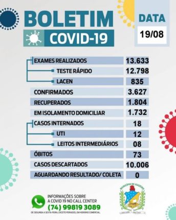Mais 51 pessoas estão curadas e outras 33 tiveram resultado positivo para a COVID-19 em Juazeiro