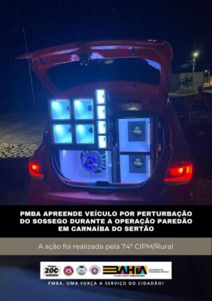 A Polícia Militar da Bahia continua jogando duro aos que teimam em desrespeitar a Lei do Silêncio em Juazeiro, na sede e interior do município. Por meio da 74ª CIPM/Rural, a PM realizou a apreensão de um veículo no distrito de Carnaíba do Sertão durante a Operação Paredão, em razão de perturbação do sossego causada […]