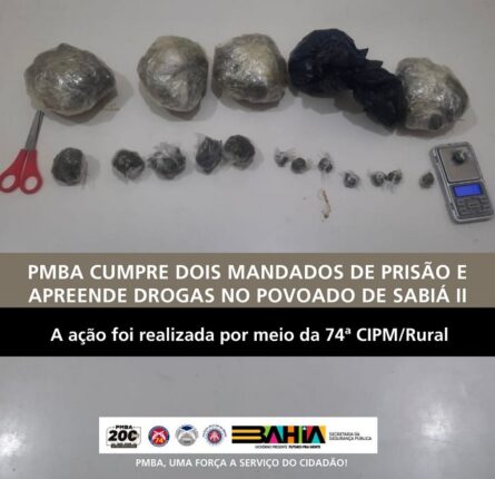 PMBA, através da 74ª CIPM/RURAL, cumpre dois mandados de prisão e apreende drogas no povoado de Sabiá II