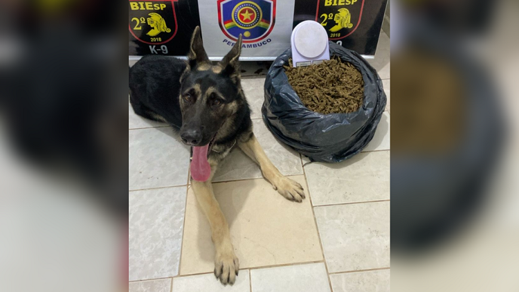 Petrolina: cão farejador do 2º BIEsp encontra mais de 12 kg de maconha em buraco