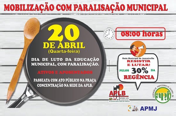 A APLB Sindicato em Juazeiro começa a semana após a Páscoa anunciando uma agenda de mobilização para dar continuidade à luta dos trabalhadores em educação pela garantia de direitos assegurados em lei. Uma reunião foi realizada na semana passada com os advogados da entidade para discutir estratégias para o enfrentamento jurídico quanto à Lei que […]