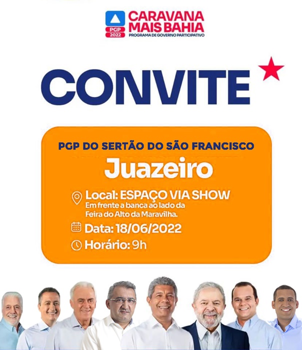 O pré-candidato a deputado estadual, Isaac Carvalho, convida toda a população de Juazeiro e região para a construção do Programa de Governo Participativo – PGP Sertão do São Francisco, do pré-candidato a Governador da Bahia, Jerônimo Rodrigues.