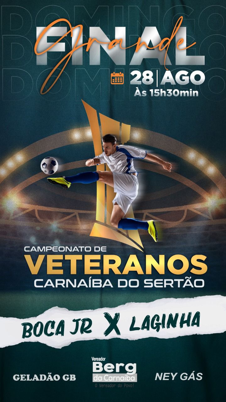 Neste domingo (28), às 15h30, acontece a grande final do Campeonato de Veteranos de Carnaíba do Sertão, evento foi idealizado pelo vereador Berg da Carnaíba. Se enfrentarão as equipes finalistas Boca Jr e Laginha. Esta é a terceira edição da competição, com o objetivo de incentivar a prática esportiva e o lazer no Distrito de Juazeiro.