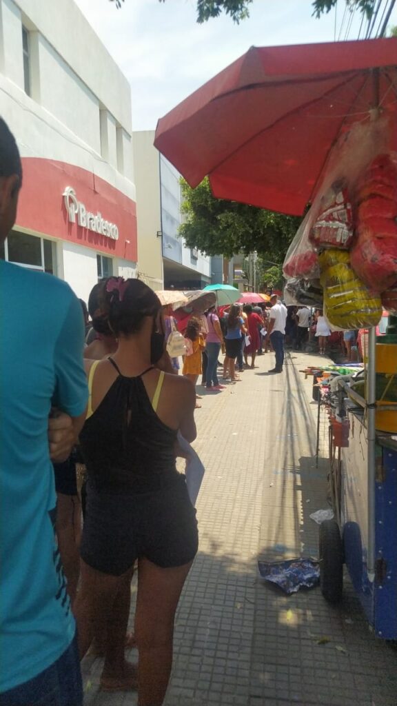 “Mais uma cena triste em Juazeiro, já não bastasse a demora, agora a gente tem que esperar expostos ao sol”, este é um relato de um dos seguidores do Vale Comentar que enviaram essas imagens para mostrar os sofrimentos diários que os clientes da Caixa sofrem na cidade.