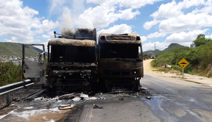 Com o choque, deu-se início a um incêndio. As chamas atingiram os dois veículos, especialmente as cabines, que ficaram completamente queimadas.