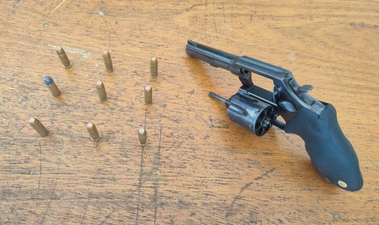 Ao ser abordado pelos PMs, o homem revelou possuir um arsenal em sua residência. Os militares encontraram um revólver calibre 38, municiado com seis munições intactas e mais três munições do mesmo calibre em uma bolsa.