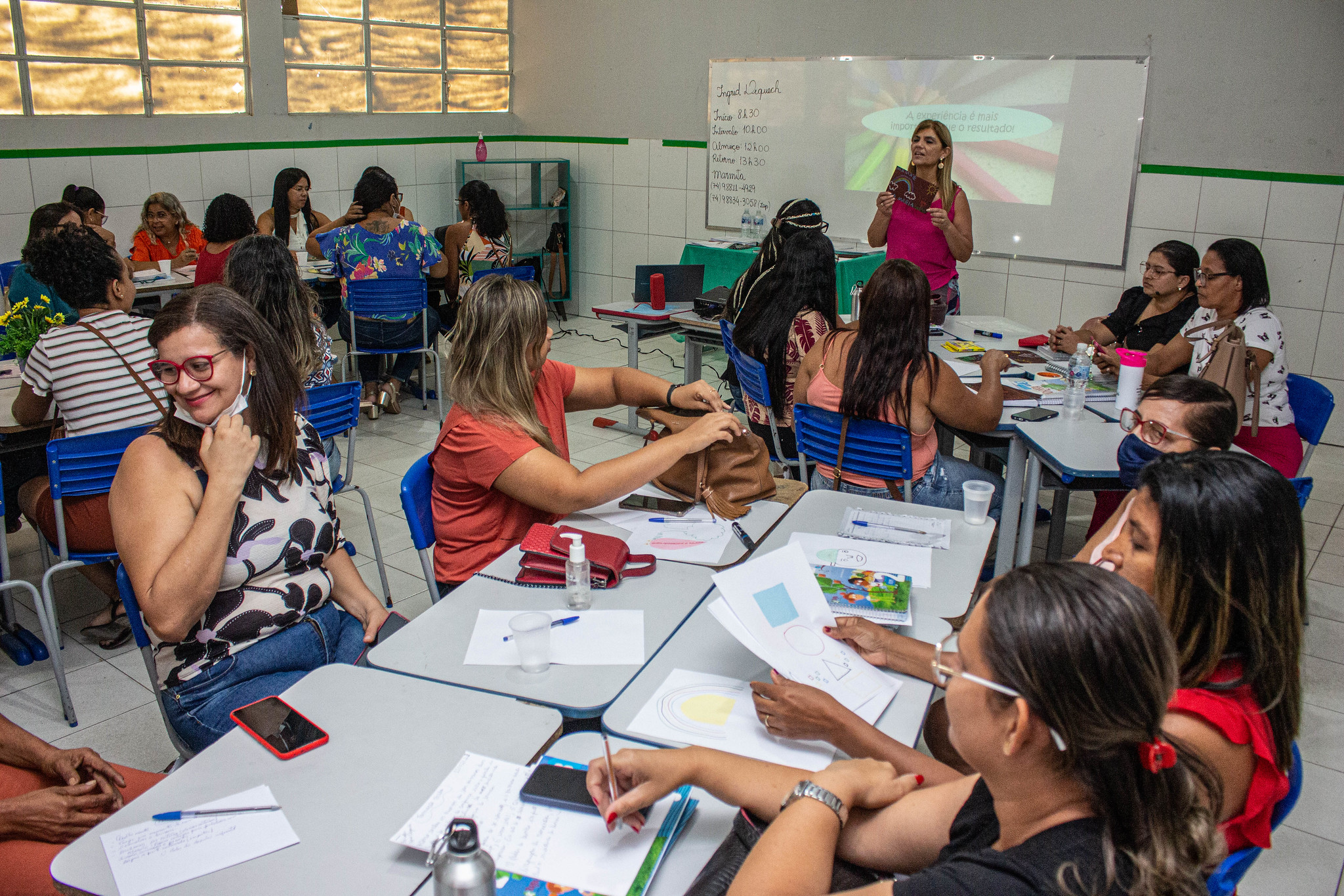 O auditório da Seduc recebeu os professores da disciplina de Empreendedorismo, que contaram com uma formação realizada por Andréia Shirley, técnica e formadora da rede municipal de ensino. As atividades também aconteceram na Escola de Formação Continuada de Educadores Parlim (Efep), que teve como público, professores Educação Infantil I e II, e na Escola Municipal Professora Maria de Lourdes Duarte, que recebeu os professores da Educação Infantil III, nestes locais, os profissionais participaram da formação sobre uso de materiais didáticos inovadores.