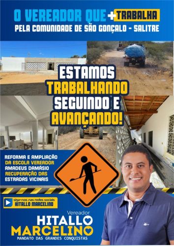 “Contribuir com o desenvolvimento da comunidade de São Gonçalo foi uma das nossas promessas de campanha e assim estamos fazendo, hoje a comunidade conta com à conclusão das obras de Reforma e Ampliação da Escola Municipal Vereador Amadeus Damásio, como também a Recuperação das Estradas Vicinais. Fruto de muito trabalho e articulação do nosso mantado. Frisou o vereador