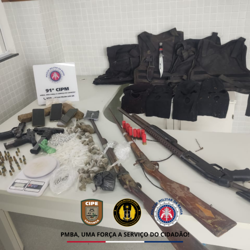 A Polícia Militar da Bahia, através da Companhia Independente de Policiamento Especializado (CIPE-Caatinga), apreendeu no último sábado (09), drogas e armas de fogo no município de Várzea da Roça – BA.