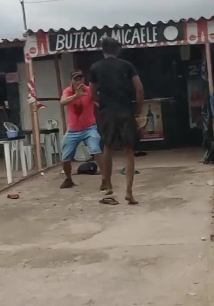 A vítima é outro homem, que foi atingido por um golpe de faca na região da cabeça. A tentativa de homicídio foi registrada em vídeo por populares.