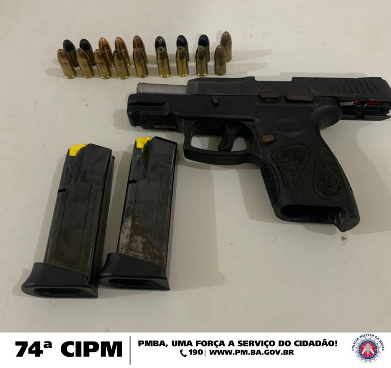 Durante a operação, uma pistola calibre 9mm foi encontrada em sua posse, dentro de uma gaveta de um guarda-roupa, devidamente municiada e carregada, juntamente com um carregador contendo 18 cartuchos intactos.