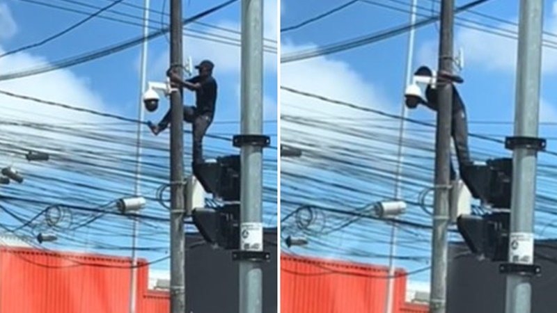 À luz do dia, para todo mundo ver e, acima de tudo, com muita ousadia. Assim agiu um homem, que não teve a identidade revelada, escalado em um poste para remover a câmera de segurança, no bairro do Cabula, na cidade de Salvador. O indivíduo foi flagrado por populares que filmaram o momento da ação criminosa.