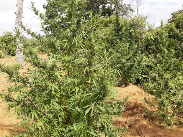 Em continuidade a Operação Terra Limpa, que visa o combate ao plantio e ao tráfico de drogas, os policiais militares localizaram, por trás da Agrovilas 13, Projeto Pedra Branca, zona rural do município, aproximadamente 36.000 (trinta e seis mil) pés da danada da erva distribuídas em três roças.