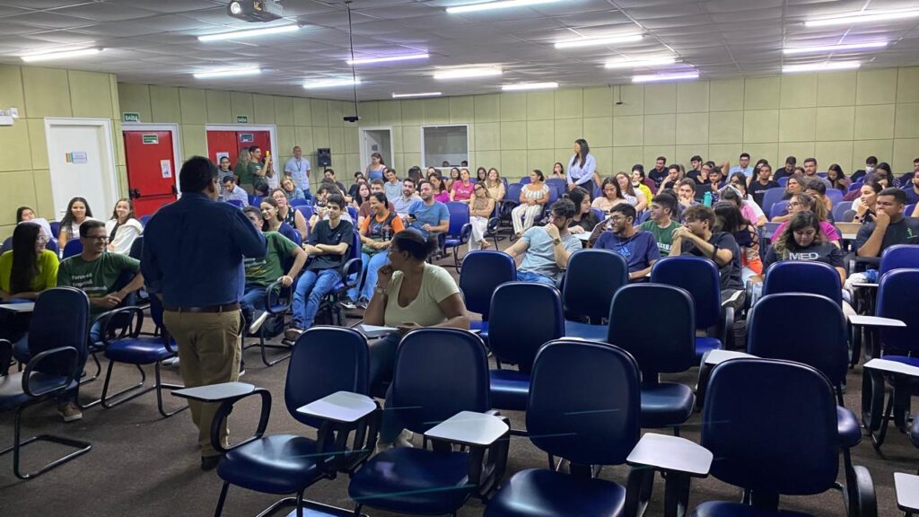 O auditório da instituição estava repleto de alunos e integrantes do corpo administrativo e docente, além de contar com a participação, via chamada de vídeo, da Coordenadora Nacional do IDOMED Carreiras, Débora Freitas, e do Diretor Regional Norte/Nordeste do IDOMED, Edemilson Marques da Silva. Durante o evento, os alunos foram apresentados ao IDOMED Carreiras e informados sobre todos os benefícios disponíveis ao longo de sua graduação na unidade de Juazeiro.