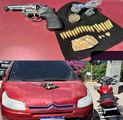 Os materiais apreendidos e o suspeito foram entregues à Delegacia de Polícia Civil.