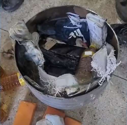 Os policiais penais cortaram o botijão com uma serra elétrica e localizaram garrafas plásticas de água mineral com uísque, celulares e tabletes de maconha.